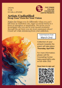 The Artists Undistilled Challenge at Five Towns College continues to grow beyond its original focus, offering students a creative and reflective way to examine personal habits while prioritizing mental well-being.