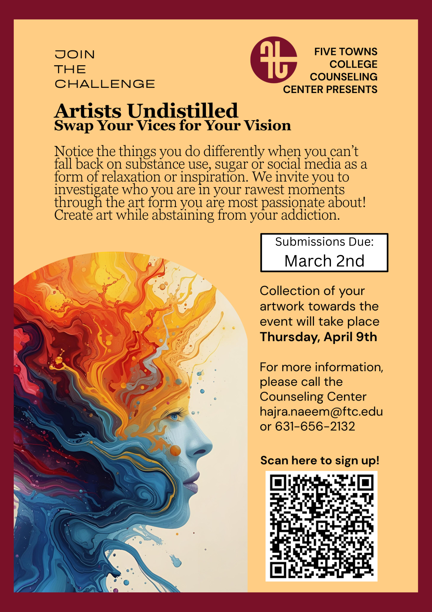 The Artists Undistilled Challenge at Five Towns College continues to grow beyond its original focus, offering students a creative and reflective way to examine personal habits while prioritizing mental well-being.
